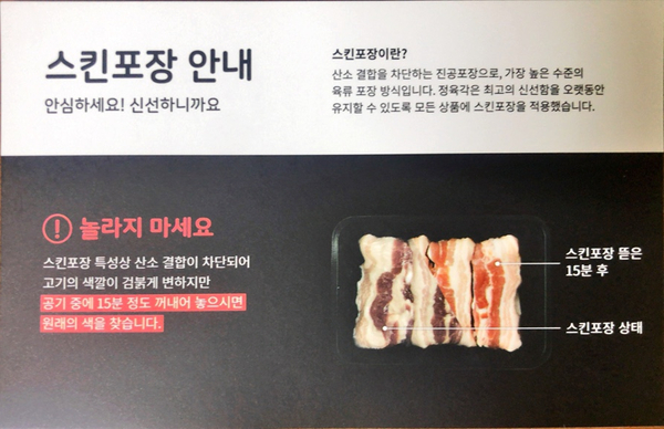 산소 결합이 차단되어 고기 색깔이 살짝 달라보일 수 있으나 신선함을 위해 포장에도 신경을 많이 썼다는 것!