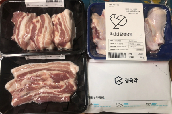 요즘 코로나19 때문에 마트를 잘 안가고 정육각의 고기가 신선함이 다르다고 하여 주문!