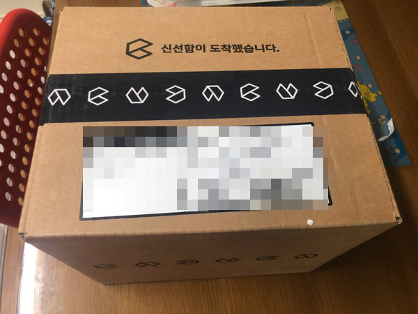 현관에 일어나서 문을 열어보니 신선함이 도착했다는 박스와... 문자가 오긴 왔네요